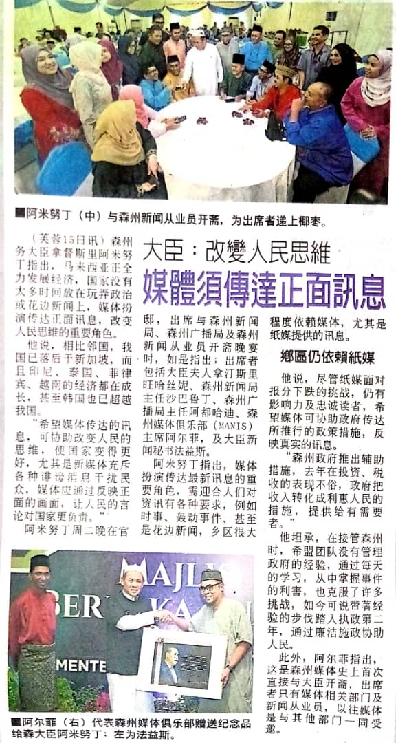 Tajuk :Majlis Berbuka Puasa bersama Pengamal Media, Staf Pejabat MB, Jabatan Penerangan, Radio Televisyen Malaysia (RTM) dan Unit Korporat SUK di kediaman MBNS. Setinggi penghargaan diucapkan kepada pengamal media atas kerjasama memberi liputan sejak kemenangan Pakatan Harapan.