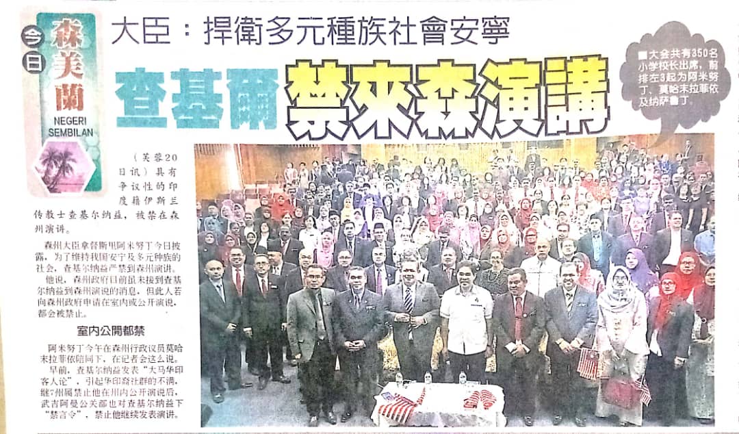 Tajuk :Seremban - MBNS melarang Dr Zakir Naik mengadakan ceramah di negeri ini bagi mengelakkan timbul sebarang isu perkauman demi menjaga perpaduan semua kaum.