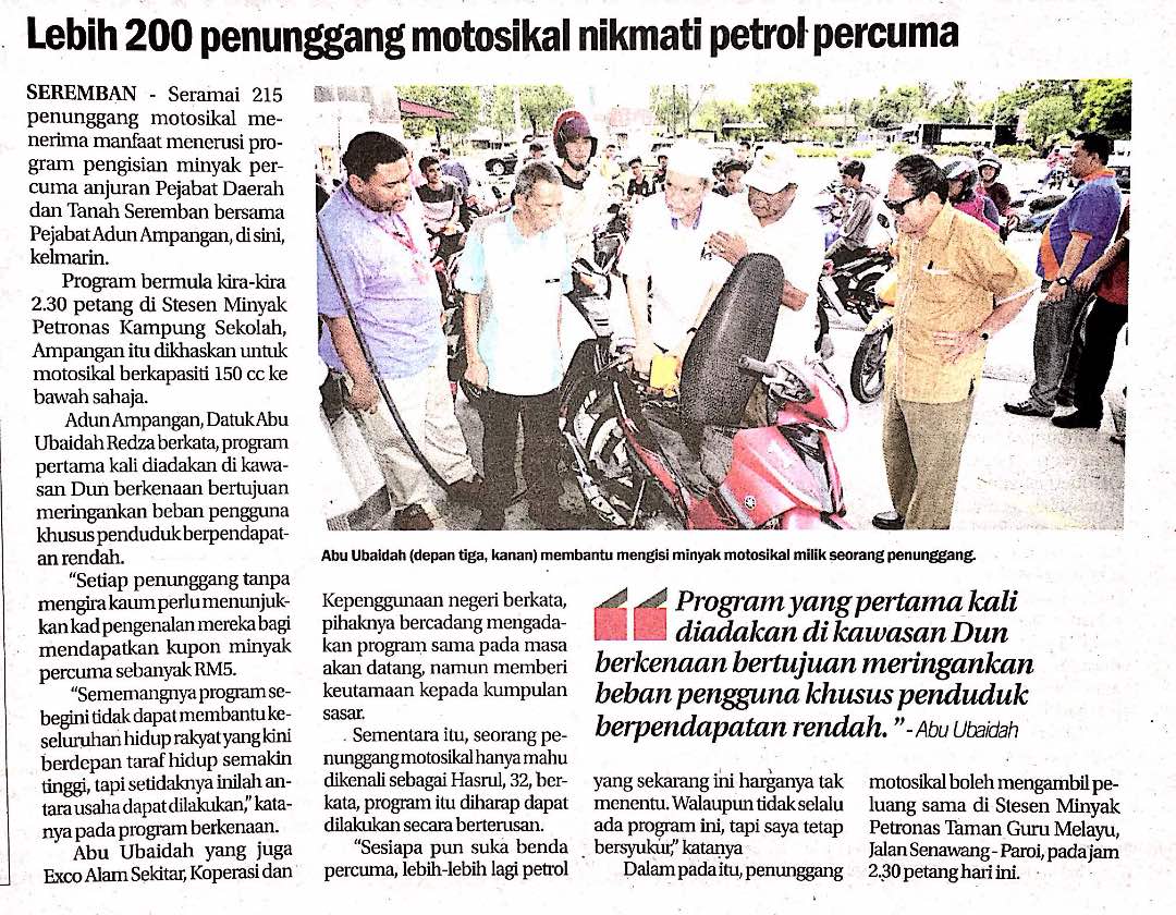 Tajuk :Lebih 200 penunggang motosikal nikmati petrol percuma