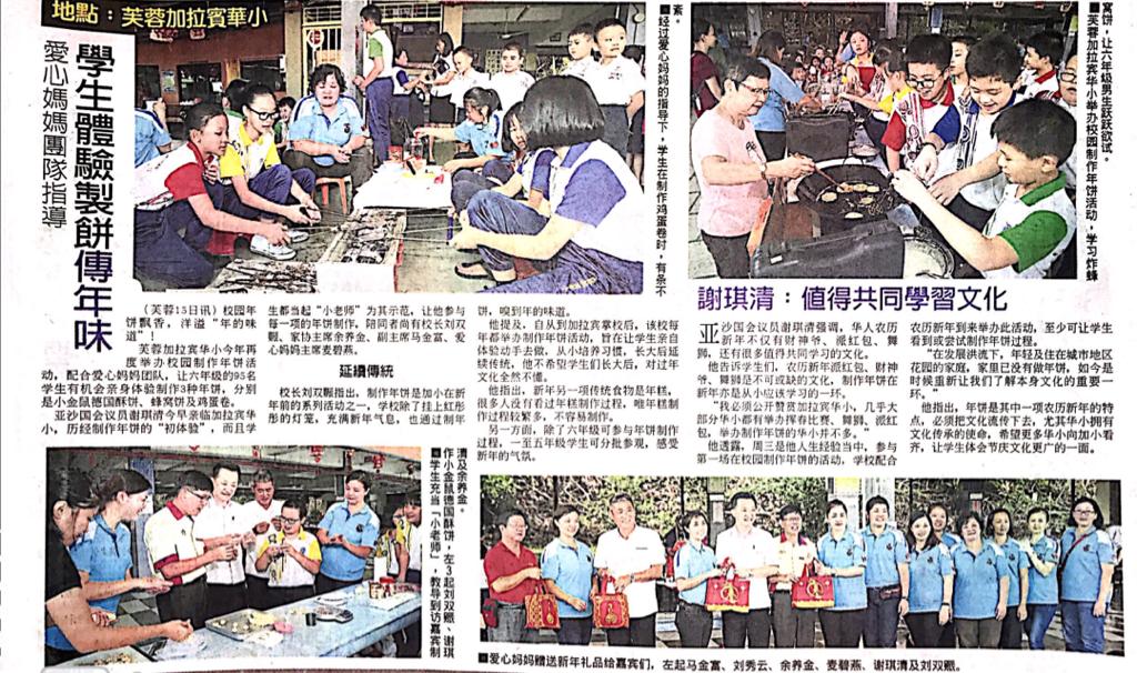 Tajuk :Seremban:YB Tuan Cha Kee Chin telah menghadiri program kebudayaan bersempena sambutan Tahun Baru Cina di SJKC Kelpin iaitu Pembuatan Kek Tahun Baru.