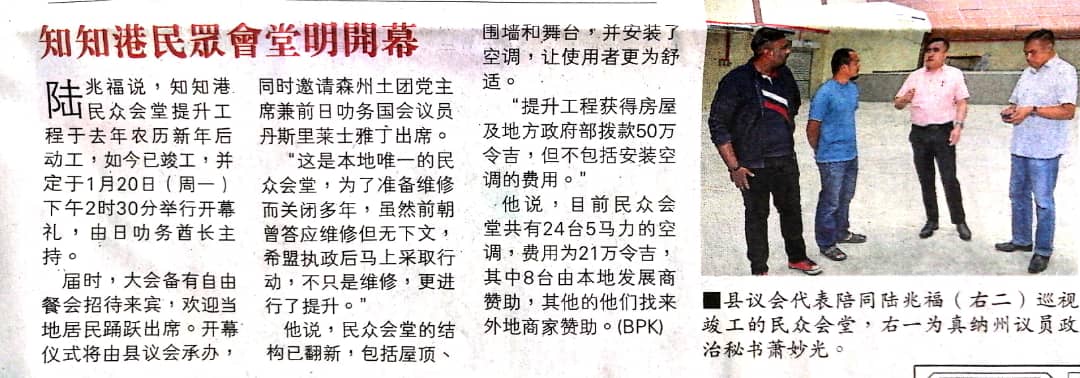 Tajuk :YB Tuan Loke Siew Fook melawat Dewan Orang Ramai Titi yang telah melalui proses pembaikan dan penaiktarafan yang menelan belanja sekitar RM 500,000 dari Kementerian Perumahan dan Kerajaan Tempatan.