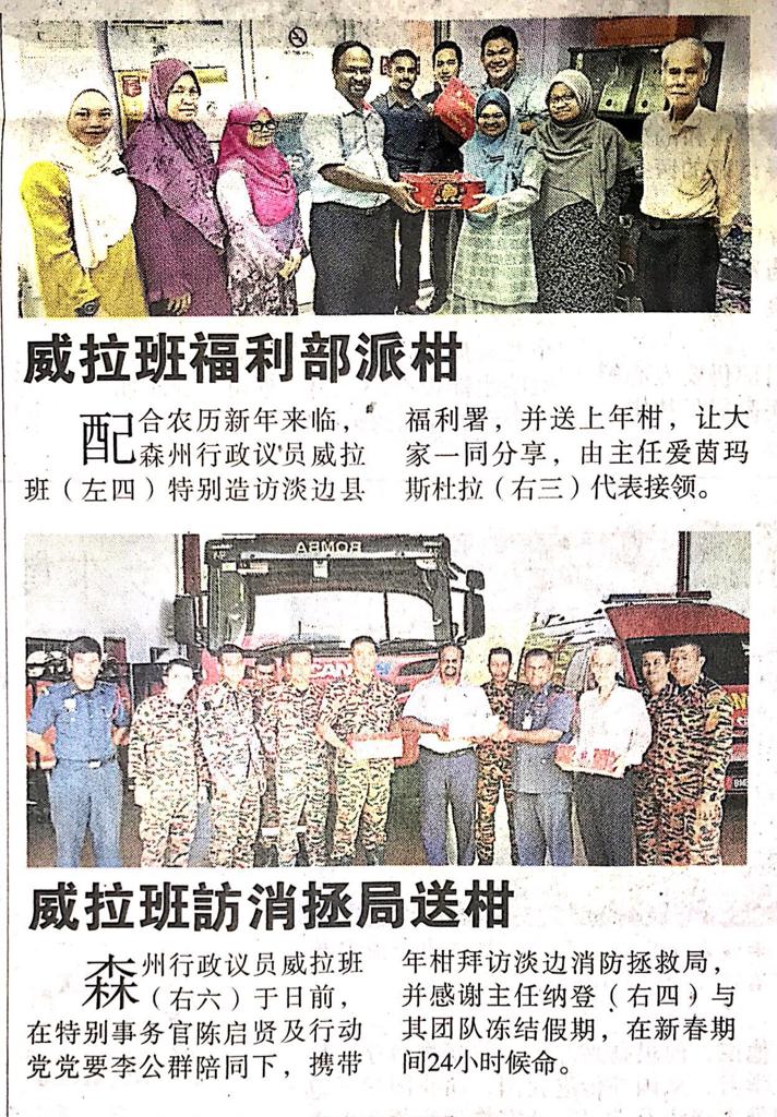 Tajuk :Tampin:YB Tuan Veerapan telah turun mengedarkan buah limau Mandarin di Jabatan Kebajikan Masyarakat Tampin dan juga Balai Bomba Tampin bersempena sambutan Tahun Baru Cina.