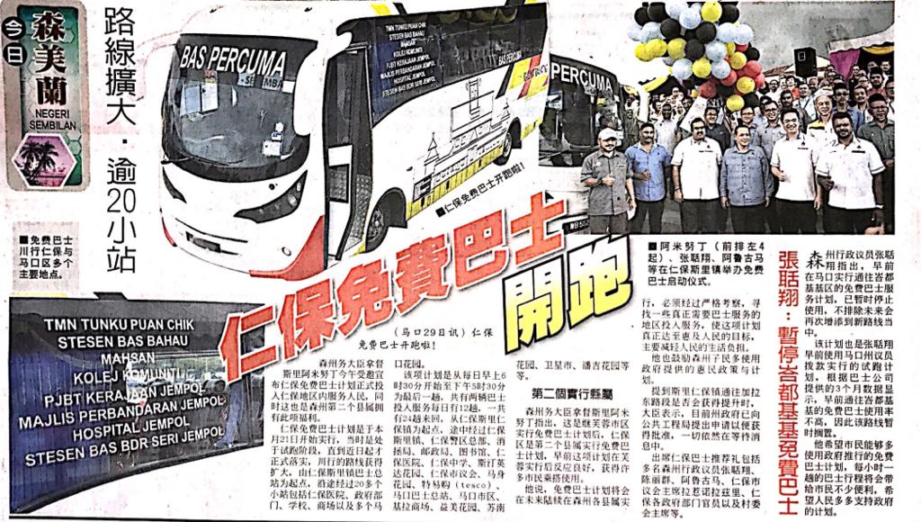Tajuk :Perkhidmatan Bas Percuma Khidmat Rakyat di Daerah Jempol bermula.