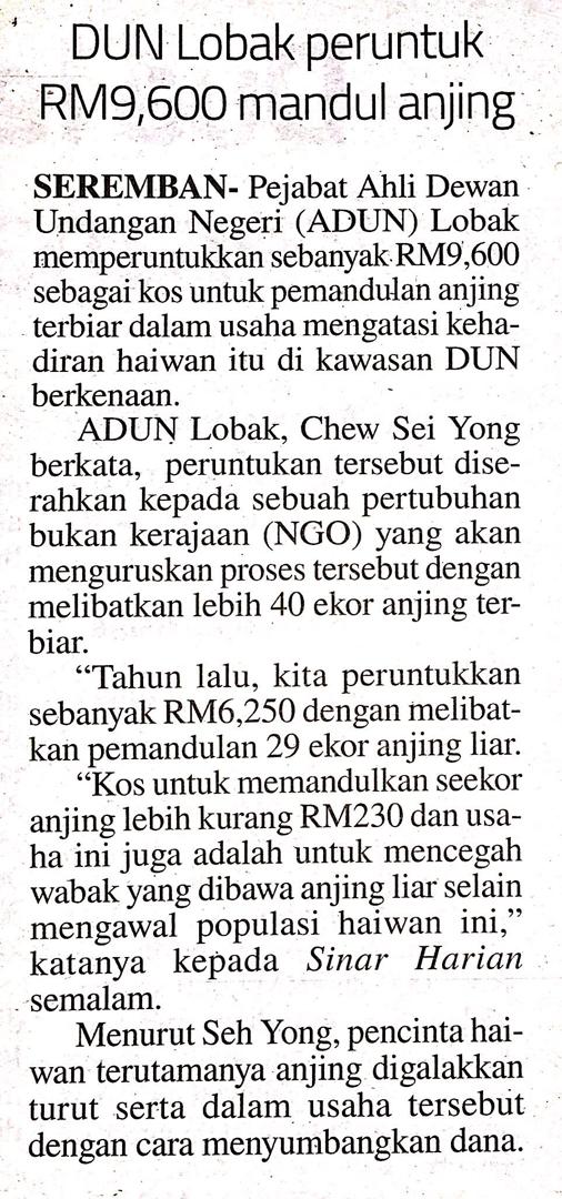Tajuk :DUN Lobak peruntuk RM9,600 mandul anjing