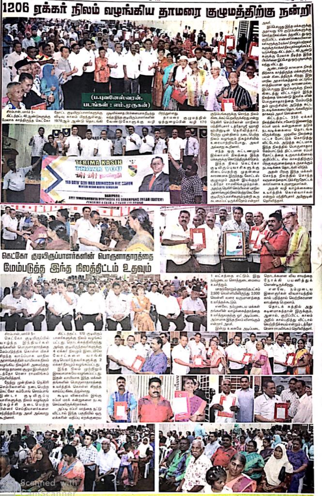 Tajuk :Jempol:Selepas 40 tahun menanti dan beberapa kali turun naik mahkamah bagi menyelesaikan hak pemilikan tanah ladang Kampung GATCO,seramai 139 penduduk akhirnya menerima geran hak milik tanah ladang tersebut.