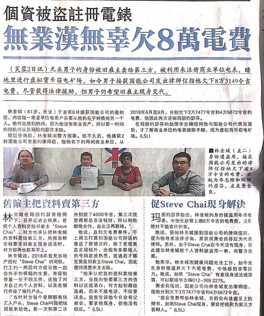 Tajuk :Seremban:YB Puan Mary Josephine telah membuat satu sidang media bersama mangsa yang maklumat peribadinya telah disalahguna oleh individu yang tidak bertanggungjawab sehingga menyebabkan mangsa berhutang dengan TNB sebanyak RM80,000 sejak tahun 2008.
