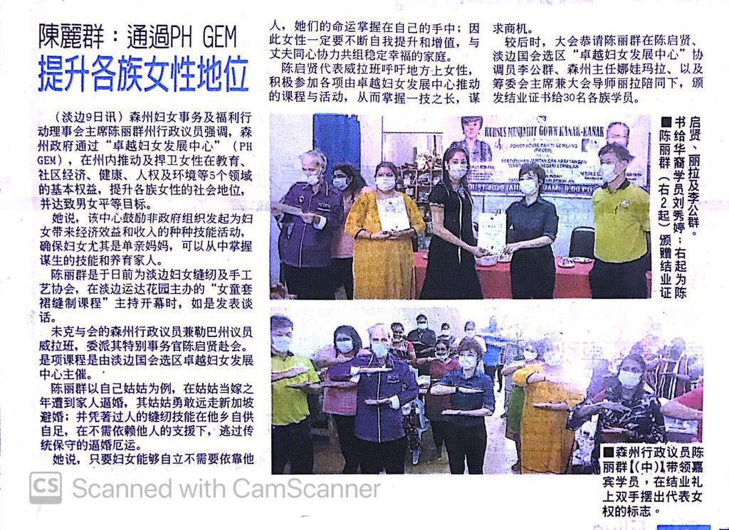 Tajuk :Tampin:YB Puan Nicole Tan Lee Koon telah menghadiri majlis perasmian penutup Kursus Menjahit Gown Kanak-Kanak