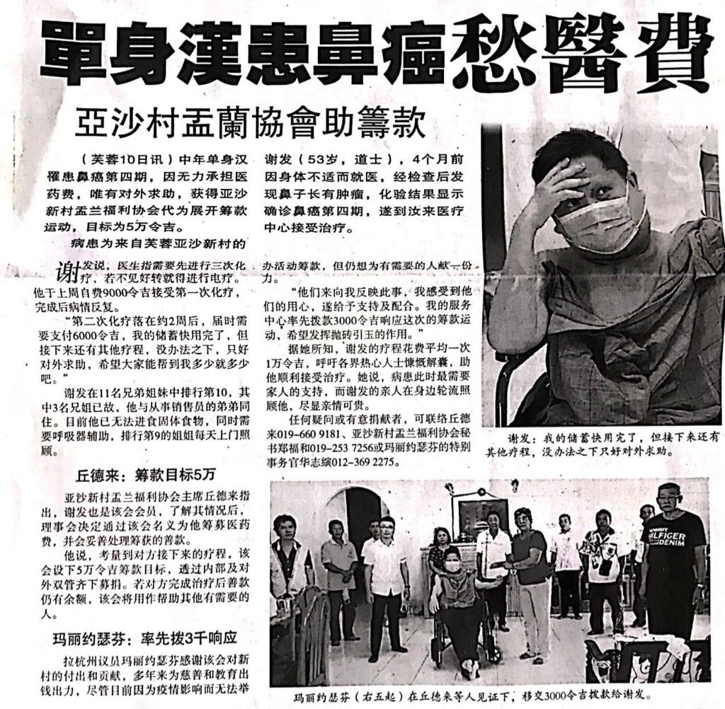 Tajuk :Seremban:YB Puan Mary Josephine telah menyertai Persatuan Kebajikan Kaum Cina Yi Lan Kampung Baru Rasah melawat seorang penduduk yang menghidapi penyakit barah.