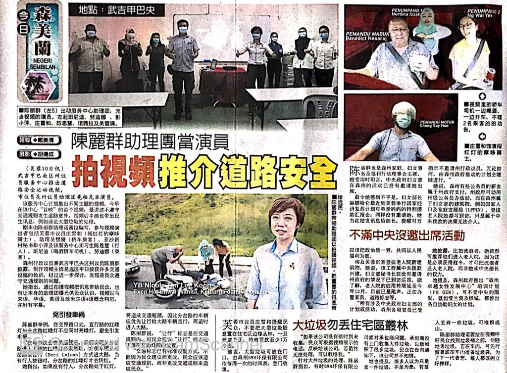 Tajuk :Seremban:YB Puan Nicole Tan Lee Koon bersama kakitangan pejabatnya telah melancarkan siri tayangan video pendek mengenai keselamatan jalan raya