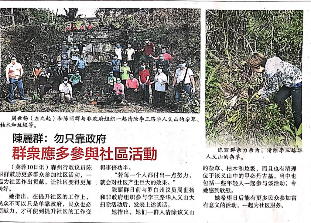 Tajuk :Seremban:YB Puan Nicole Tan Lee Koon dan YB Tuan Chew Seh Yong serta 30 orang sukarelawan bergotong-royong membersihkan kubur Kapitan Tam Yeong.