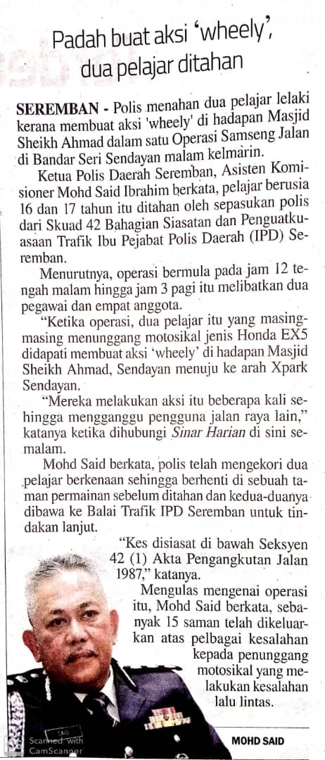 Tajuk :Padah buat aksi 'wheely', dua pelajar ditahan