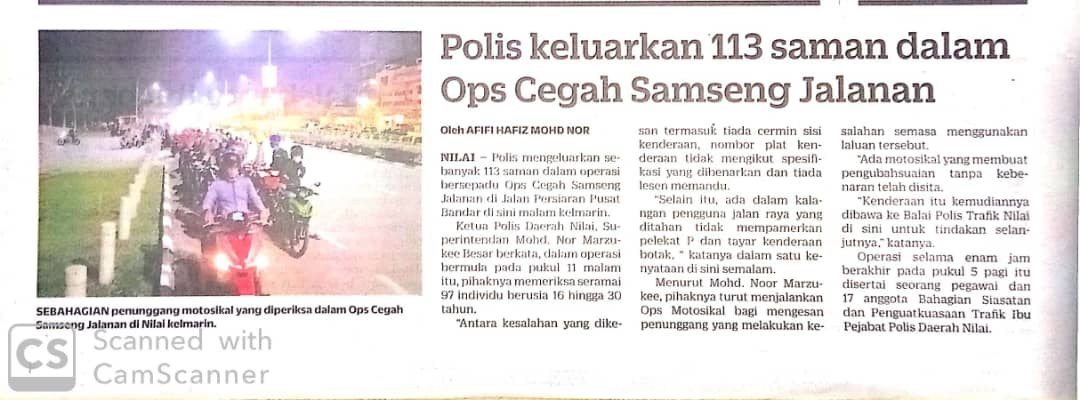 Tajuk :Polis keluarkan 113 saman dalam Ops Cegah Samseng Jalanan