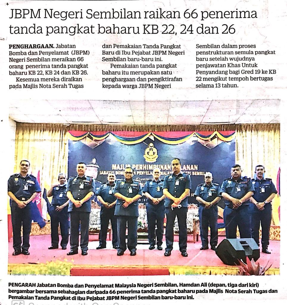 Tajuk :JBPM Negeri Sembilan raikan 66 penerima tanda pangkat baharu KB 22, 24dan 26